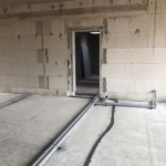 Das Vereinsheim ist verklinkert, die Fenster sind drin und die Installateure sind fleißig am verlegen von Rohren und Kabeln.